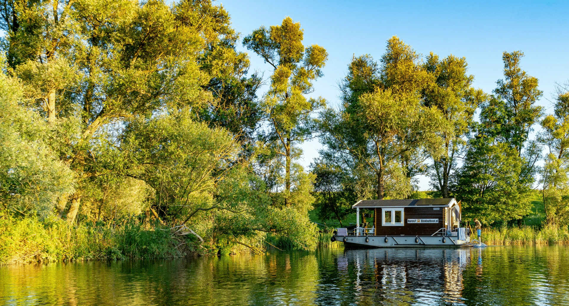 Mit dem Blockhausboot bist du in Europas einzigem Süßwasser-Gezeitengebiet unterwegs. Um die Natur zu schützen, gelten in diesem Naturschutzgebiet Parkregeln.